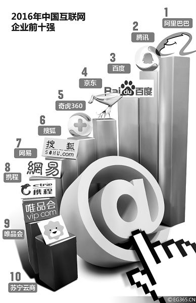 2016年中国互联网企业前十强。