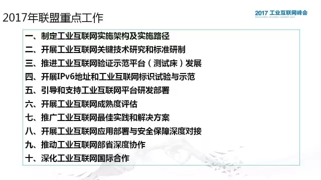 中国工业互联网产业联盟(AII)2017年重点工作。