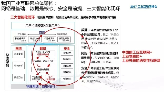 我国工业互联网总体架构:网络是基础、数据是核心、安全是前提、三大智能化闭环。