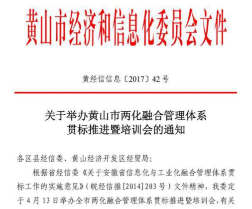 昨天,黄山市经信委在屯溪区曙光云松大酒店举办两化融合管理体系贯标推进暨培训会,23家国家级、省市级两化融合示范企业、两化融合管理体系贯标试点企业代表参加了会议。