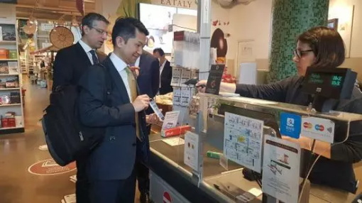 目前,支付宝的移动钱包已经支持美国运通、Visa和万事达的信用卡,目前有多达70个国际市场的超过10万家零售商接受支付宝付款。