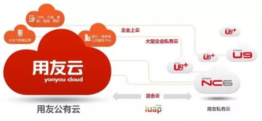 用友云由PaaS、SaaS、BaaS、DaaS以及与软件的融合服务组成,主要包括: