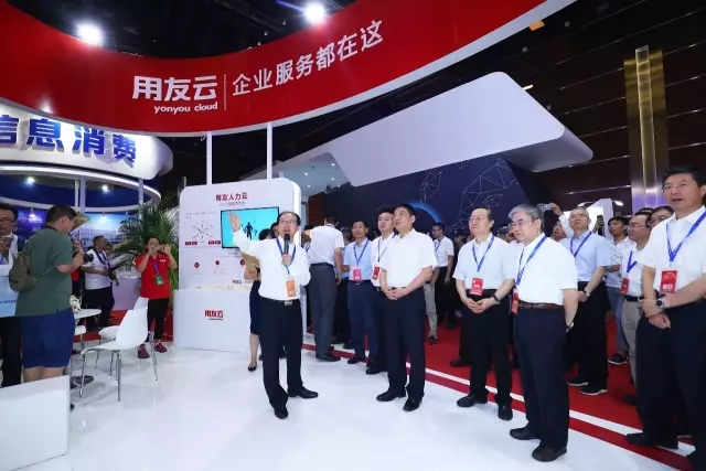 工业和信息化部部长苗圩,全国政协常委、经济委员会副主任李毅中,中国互联网协会理事长邬贺铨院士等参观了用友云展台。李毅中听取用友介绍后,做出中恳点评:用友云是平台之上的平台,是持续服务企业的平台!