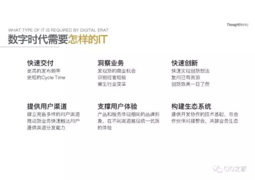 数字化已经成为整个IT业界都在讨论的话题,每个人对数字化给未来商业、社会的影响都有不同程度的共识。Gartner曾说未来所有企业的都将是IT企业。那么到底什么是数字化领导力呢?Dave说:“传统IT的范畴是控制IT组织,诸如ERP和CRM。CIO更加注重企业后台业务的流程自动化,而在数字化时代,IT应该从后台走向前台。数字化领导力的目标在于让企业中的每一个员工,企业外的每一个客户都能增加数字化常识,并能应用数字化的创新实现相对目标。传统CIO擅长让IT服务于业务,而数字化领导力是鼓励每个员工用不同的思维方式,从不同的角度激发灵感,从而实现商业创新。因此传统IT和数字化领导力有着明显的区别。”