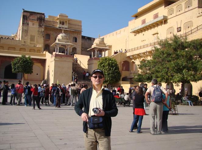 (注:斋浦尔(Jaipur)是拉贾斯坦邦(Rajasthan)首府,印度北方重镇,也是珠宝贸易中心。斋浦尔和德里及阿格拉被称为印度旅游的“金三角”。 斋浦尔现分为新旧两城,旧城多为古旧建筑物,亦是粉红城所在地,有城墙环绕着旧城并有七道城门,每条街道,都可通往城市宫殿(City Palace),还有著名的琥珀堡、老虎堡、风之宫殿等众多古老华丽的典型印度建筑。新城则为火车、巴士运输站及大酒店等新式楼房所在地。斋浦尔最大的特色就是粉红色,置身于斋浦尔的街头,环顾四周,一座座建筑整齐排列,粉红色的墙,粉红色的窗,粉红色的穹顶,就连街边小店、小摊,甚至厕所也都涂成了粉红色。尤其是在傍晚时分,残阳如血,彩霞满天,在既不剌眼又让人能看清轮廓的日照之下,整个斋浦尔就是一个粉红色的梦。如果你碰巧在2月或3月来到这里,还能看到大街上成群结队的大象,因为这时在举办一年一度的大象节。)