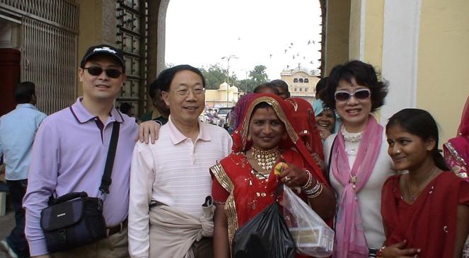 宋 谠(左一)在Jaipur粉红色大市场与印度美女合影留念