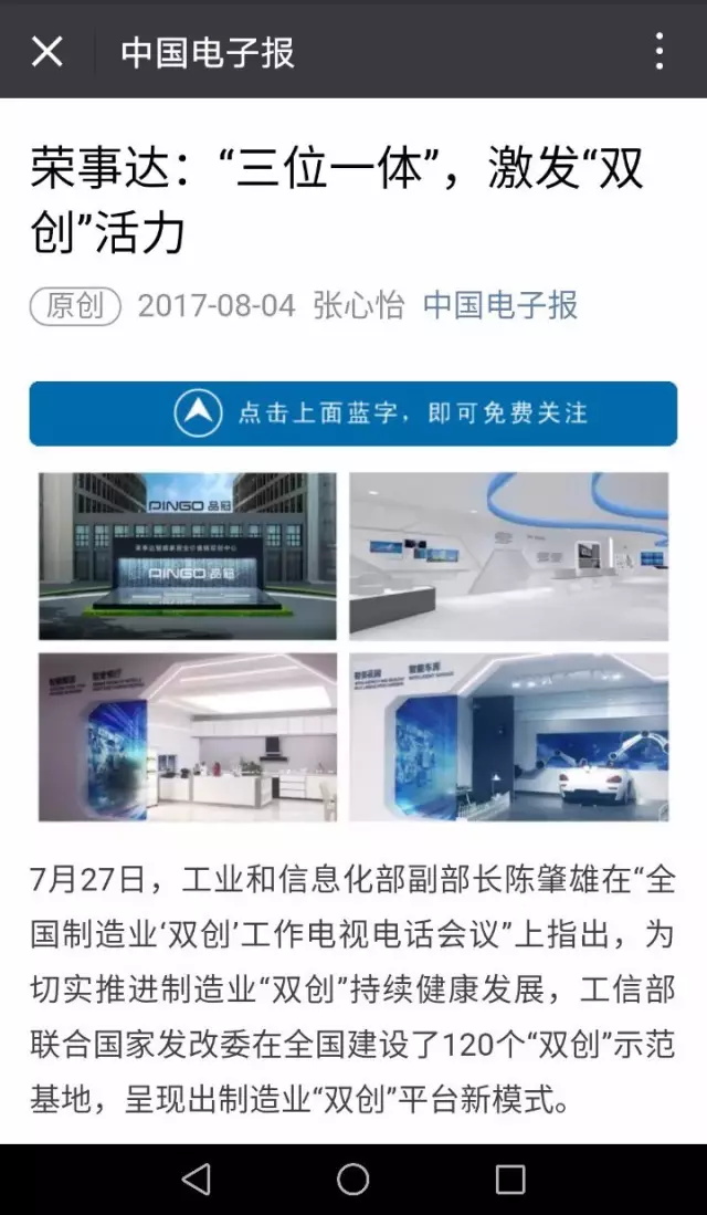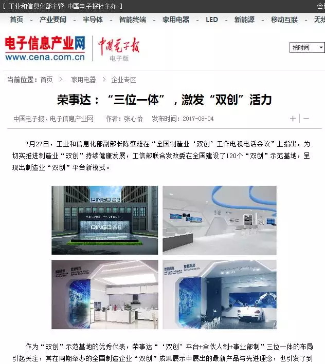 与此同时,工业和信息化部主管的《中国电子报》记者也专访了荣事达相关负责人,并对荣事达双创进行了专题报道。