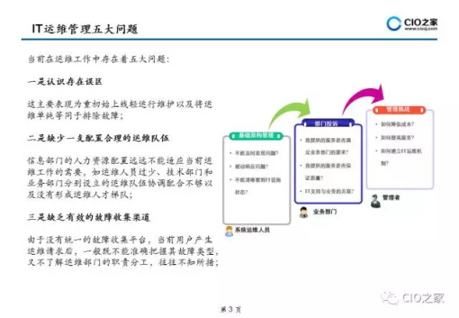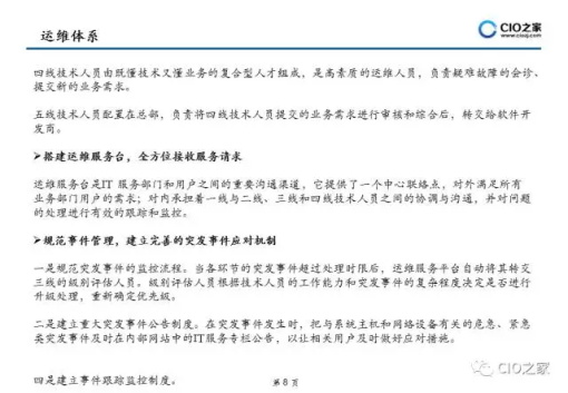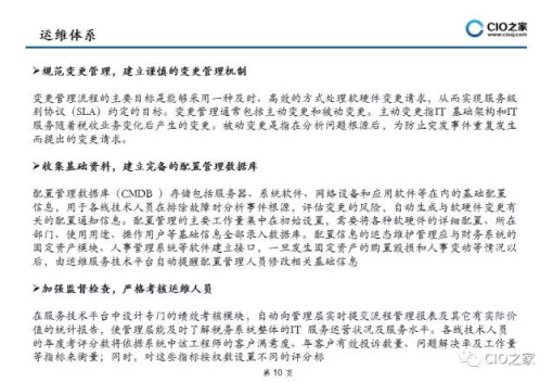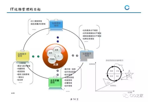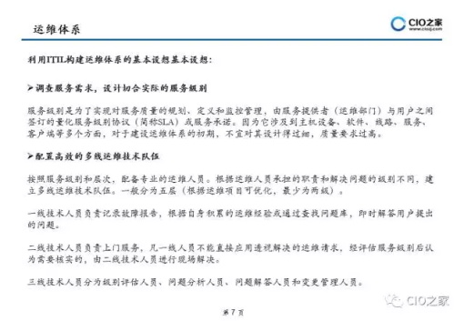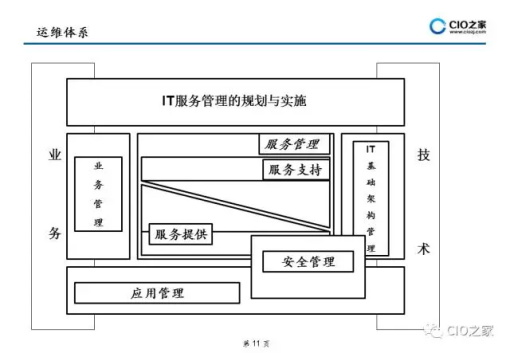 从信息系统的整个生命周期来看,实施建设只占其生命周期的 20%,而其余80%的时间都是对其进行运行维护.实现运维管理从传统被动式服务转变为主动预 防服务,以流程贯穿整个运维管理过程,实现运维管理的 标准化、规范化和流程化是目前企业信息化建设急需解决流程等方面提供指导,帮助用户设计出合适的IT服务解决方案及流程。