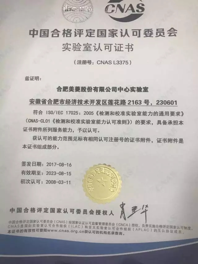 从中国合格评定国家认可委员会获悉,专注于电器制造的美菱,凭借中心实验室的科研能力以及检验检测实力,再度获得中国合格评定国家认可委员会实验室认可证书,以高标准设备仪器孵化美菱创新产品科技,美菱电器正在夯实科技研发基地,助力品牌的自主创造。