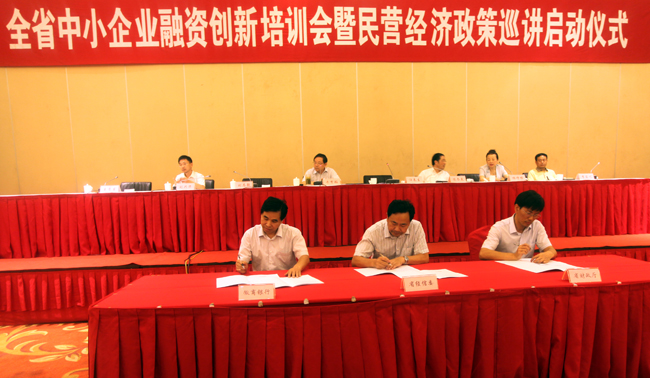 8月15日,全省中小企业融资创新培训会暨民营经济政策巡讲启动仪式在合肥举办。委主任牛弩韬、副主任汪春生、中小企业局局长陈冬克出席会议。省财政厅、省信用担保集团、建行安徽分行、招行合肥分行、徽商银行相关负责人参加了签约仪式。委相关处室局、全省中小企业高管人员及市经信委相关负责人约230人参加了培训。