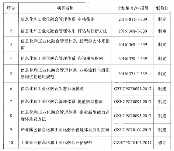 围绕两化融合管理体系标准应用推广需求,在《信息化和工业化融合管理体系 基础和术语》(GB/T 23000-2017)、《信息化和工业化融合管理体系 要求》(GB/T 23001-2017)基础上,加快研制产业亟需的系列标准,为各方更快更好的本质贯彻两化融合管理体系、提升企业新型能力提供有力支撑。