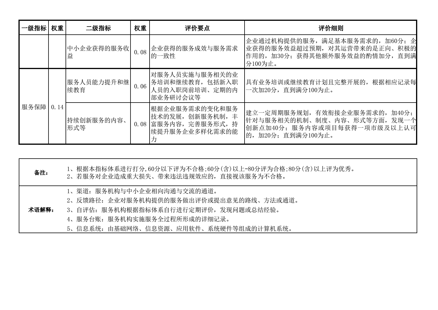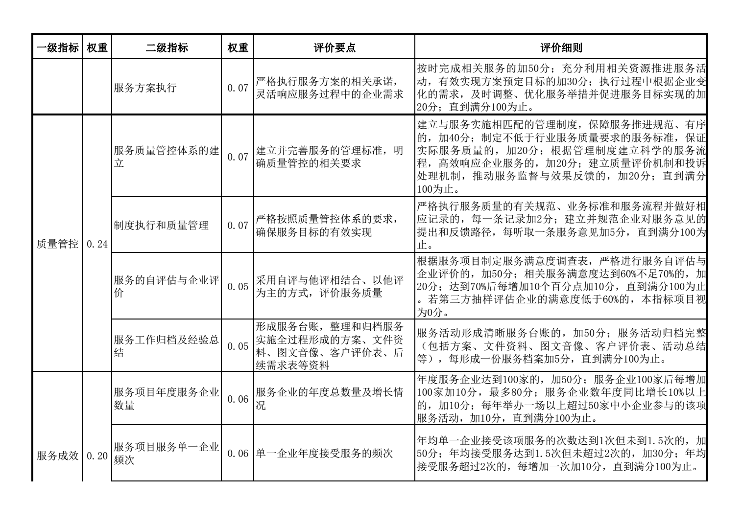 本评价指标为非强制引导性规范,引导各类中小企业公共服务机构依据本评价指标完善服务流程,改进服务方式,确保服务质量。