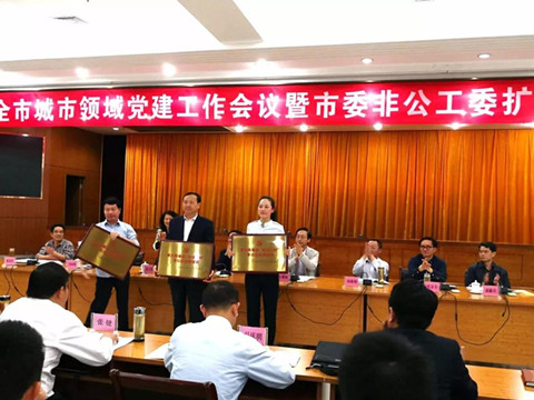 2017年底,在对照标准、逐级推荐、认真审核把关的基础上,省委组织部、省委非公经济和社会组织工委决定命名第五批省级“双强六好”非公企业党组织,六安共有3家企业获此殊荣,我公司党委在列。在4月20日召开的全市城市领域党建工作会议暨市委非公工委扩大会议上,我们捧回了这一奖牌。