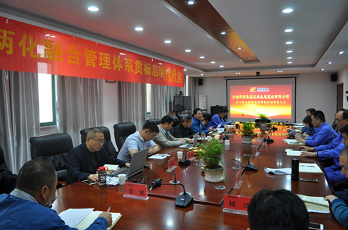 2018年4月25日,是安徽辉隆集团五禾生态肥业有限公司转型发展的重要纪念日,国家级两化融合管理体系贯标启动推进大会隆重召开,总经理主立庚说:两化融合贯标,吹响了向绿色制造、智能制造的号角,是五禾生态肥业转型发展的新动力。省化肥工业协会、省两化融合专委会、辉隆集团、蚌埠市区经信委和安徽省新世纪认证咨询有限责任公司的领导和辅导专家光临指导!安徽电视台记者跟踪报道。