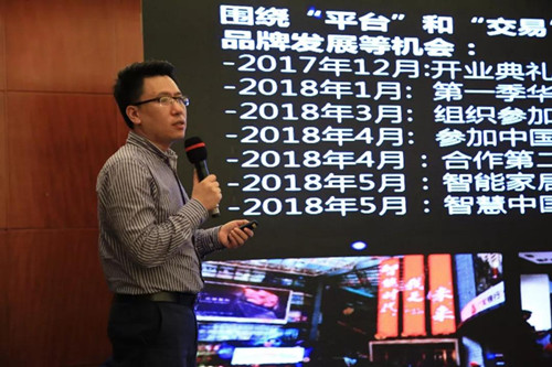CSHIA智能家居交易平台工作组组长单位华强智能家居国际交易中心副总经理杨宇总结了交易中心上半年的工作成果,并表示交易中心将在不断扩展市场规模的同时,聚焦B端垂直行业、外贸电商、设计师、渠道等开展精准营销,并同步开展C端市场培育工作。