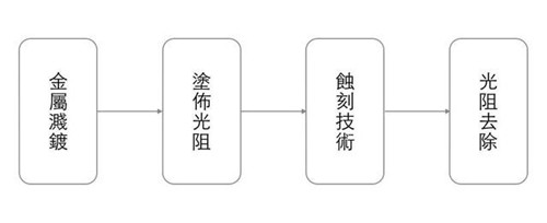 光阻去除:使用去光阻液皆剩下的光阻溶解掉,如此便完成一次流程