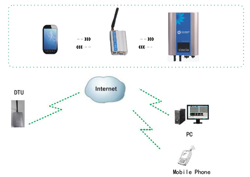 2.DTU模式:利用上网手机卡或者WIFI实现对系统实时工作状态的远程监控,在电脑或手机端查询和控制系统运行状况。