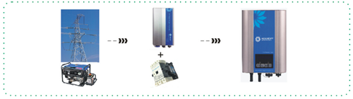 电源控制器适用于太阳能光伏水泵逆变器所有机型在弱光照条件或无光照条件下,用户可使用市电或发电机作为补给能源,从而实现系统24小时不间断工作,如下图所示。