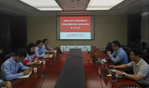 2018年9月27日,秋高气爽,在国庆节的前夕,上海质量管理科学研究院两化融合管理体系评定审核组,对安徽省天然气开发股份有限公司(股票简称:皖天然气)两化融合管理体系建设及运行情况进行第一阶段现场评估审核。公司最高管理者贾化斌董事长、副总经理吕石音(管理者代表、CIO)和各部门贯标责任人、内审员及国家工信部批准的两化融合咨询机构---安徽省新世纪认证咨询有限责任公司辅导专家组成员参加了评审工作。