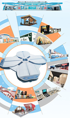 整体造型以中国古建筑“斗拱”形制,层叠出挑。“中国馆没有一面隔墙,没有一处隔断,完全是通透的、开放的。”商务部外贸发展局局长吴政平介绍。