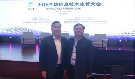 (在表彰大会上,王董向工信部两化融合推进处王建伟处长汇报工作)