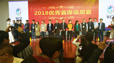 (工信部两化融合推进处王建伟处长给王董颁发全国优秀CIO荣誉证书)