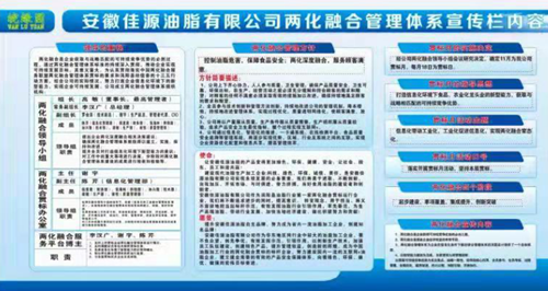 两化融合是企业获取与战略匹配的可持续竞争优势的必然过程。通过两化融合管理体系标准的持续深入贯彻,推动企业实现可持续发展目标,其意义重大。安徽佳源油脂有限公司为认真贯彻落实中国两化融合服务联盟两化融合管理体系贯标的要求和涡阳县经信委的十三五行动方案,结合公司的实际情况,努力打造企业信息化环境下的新型能力,实现企业可持续发展。公司成立两化融合管理体系组织机构,董事长高敏亲自挂帅出任组长,总经理、副总经理和各部门负责人将互联网+纳入本身的工作岗位,实现全员贯标责任制。