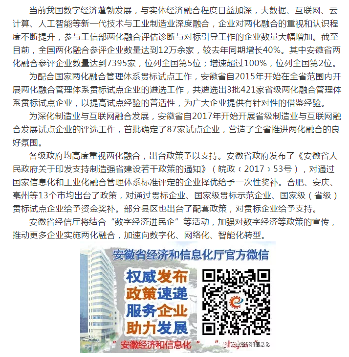 【安徽省新世纪】安徽省经信厅官网消息:安徽省企业两化融合进入加速期
