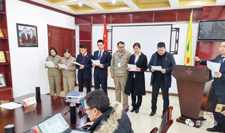 安徽谓博中药股份有限公司总经理王展召带领贯标小组成员向全区工业企业发出智能制造、互联网+、双创的倡议书。