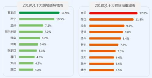 近日,高德地图联合交通运输部规划研究院、清华大学-戴姆勒可持续交通研究中心、未来交通与城市计算联合实验室、阿里云等单位重磅发布《2018Q1中国主要城市交通分析报告》(以下简称“报告”)。报告显示,我国主要城市拥堵趋势持续下降,一季度近六成城市拥堵同比持平或下降,仅有18%的城市通勤高峰受拥堵影响,众多传统堵城跌出堵城排行榜前十,本季首堵为三线城市银川。此外,上海市网约车补贴大战期间,上海同期早高峰拥堵指数创近四年新高。