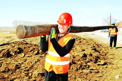 移动公司施工人员对记者说,如果记者早来几天,是看不到施工现场的,因为到4月份气温升高冻土才没那么硬,才勉强可以施工。他介绍说,在高纬度地带,经常碰到挖掘机挖到40厘米左右就挖不动了,再往下就是冻土,而埋杆的标准深度是120厘米,这时施工队就点燃羊粪牛粪来烤土,以此尽快化冻来加快建设进程。