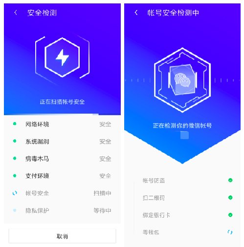 (图:腾讯手机管家安全检测帐号潜在风险)