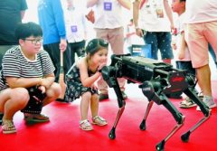 昨天,世界机器人大会在北京亦创国际会展中心开幕,博览会上一只可爱卖萌的四足犬型机器人引起了孩子们强烈的好奇。 和冠欣摄 2018世界机器人大会开幕式8月15日在北京举行,中共...