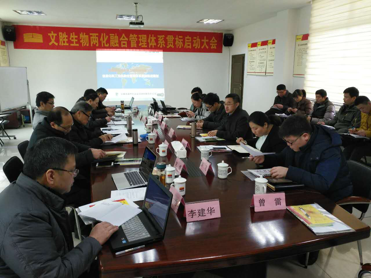 安徽省文胜生物工程股份有限公司两化融合管理体系贯标启动大会于2017年1月11日上午九时在公司二楼会议室如期举行。省、市、区经信委等领导应邀参加了会议。公司董事长李文胜、董...