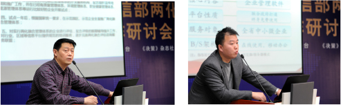 会议第二部分的研讨环节,安徽省经济和信息化委员会综合法规处处 长潘峰、合肥市委宣传部副部长魏玉萍、国家工业和信息化部创业辅导专 家张海、安徽省经济和信息化委员会新技术推广站副站长龚新涛等与会代 表做了重要发言,并结合自身工作对政务微信平台、两化深度融合的下一 步发展提出了意见和建议。