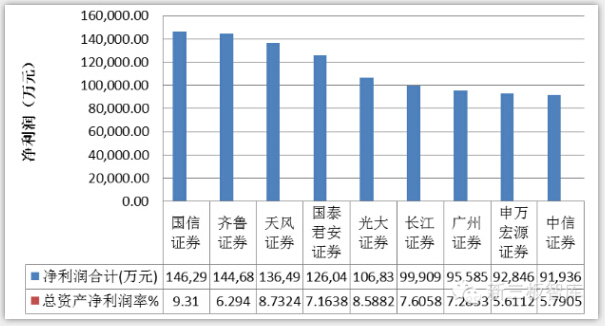 净利润最高的十家做市商的年净利润平均为11.2亿,平均总资产收益率为7.3%。反映了做市商较好的资产综合利用能力。