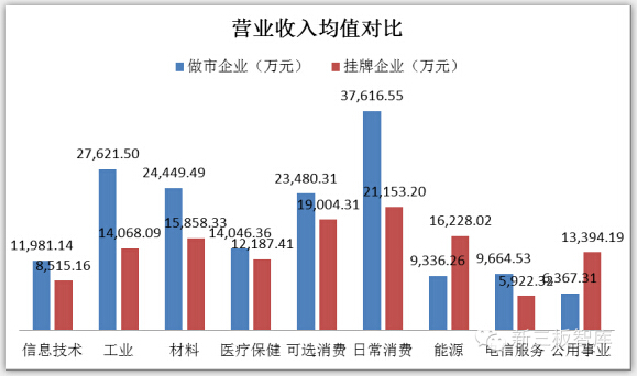 做市商选择的做市企业相对挂牌企业均具有较好的盈利能力,其中各行业营业收入平均水平均高于挂牌企业平均水平,而就净利润而言,大多数行业做市企业的利润水平更是达到了挂牌企业平均水平的三倍以上。