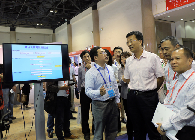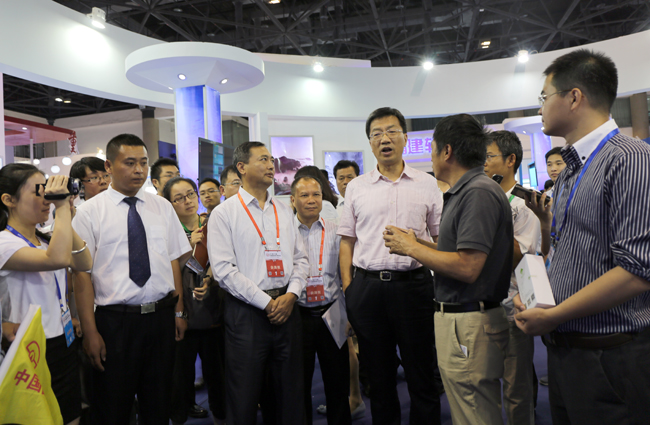 28日上午,工信部怀进鹏副部长巡视软博会安徽馆。在安徽展馆,怀进鹏副部长听取了曹晓武副主任对安徽软件产业及安徽参展企业情况的介绍,体验了科大讯飞人脸识别技术的演示,对讯飞语音技术给予了高度评价;在特瑞尔(芜湖)汽车技术有限公司展台,怀部长了解特瑞尔全车型汽车性能故障远程检测诊断仪情况;在安徽金健桥医疗科技有限公司展台,怀部长饶有兴趣地观看了“南山颈舒”产品的演示,他说“中医药是个宝库,要创新,要解决实际问题”。