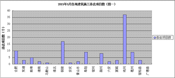 从各地查处的违法工程项目数量看,池州、铜陵、合肥、阜阳、亳州、滁州6市查处力度较大,分别查处37个、13个、10个、9个、9个、8个(见图一)。