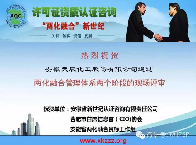 热烈祝贺 安徽天辰化工股份有限公司通过两化融合管理体系两个阶段的现场评审