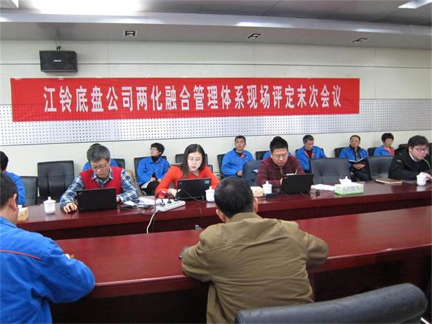 在末次会上,评审组组长于秀明代表专家评审组宣布江铃底盘通过两化融合管理体系现场评审,将提交技术委员会审查批准。