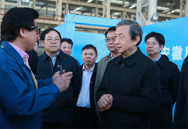 陪同此次调研的官员规格,除了安徽方面的省委书记王学军、省长李锦斌,今年2月刚刚当选为安徽省委常委,省政府常务副省长的陈树隆,合肥市委书记吴存荣,分管工业的副省长杨振超等,还有国务院国资委主任肖亚庆,工业和信息化部副部长冯飞。