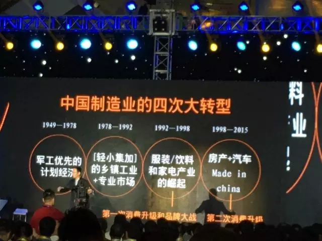 92年以后中国商品开始发展,老百姓手里有点钱,所以我们要改善他们的生活。怎么办呢?让他们吃好穿好,所以服装、饮料行业开始起来,还有保健品。当我们吃好穿好以后怎么办?我们家里夏天的时候最好有一个空调、大冰箱,89年以后开始有电视机,家电企业起来了。中国的服装品牌,中国的饮料品牌,中国的家电,你想的起来的,这三各行业的品牌,90%以上成名在1992-1998年之间,这就是中国的第二次转型。