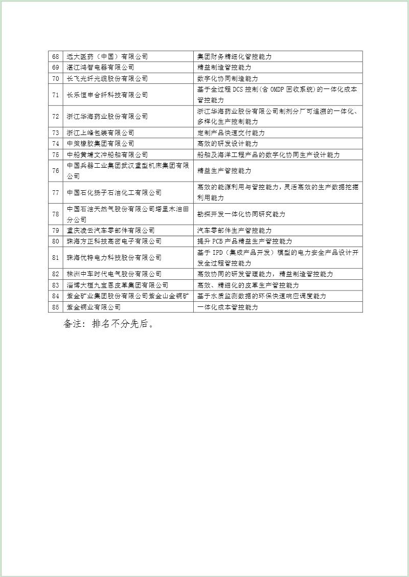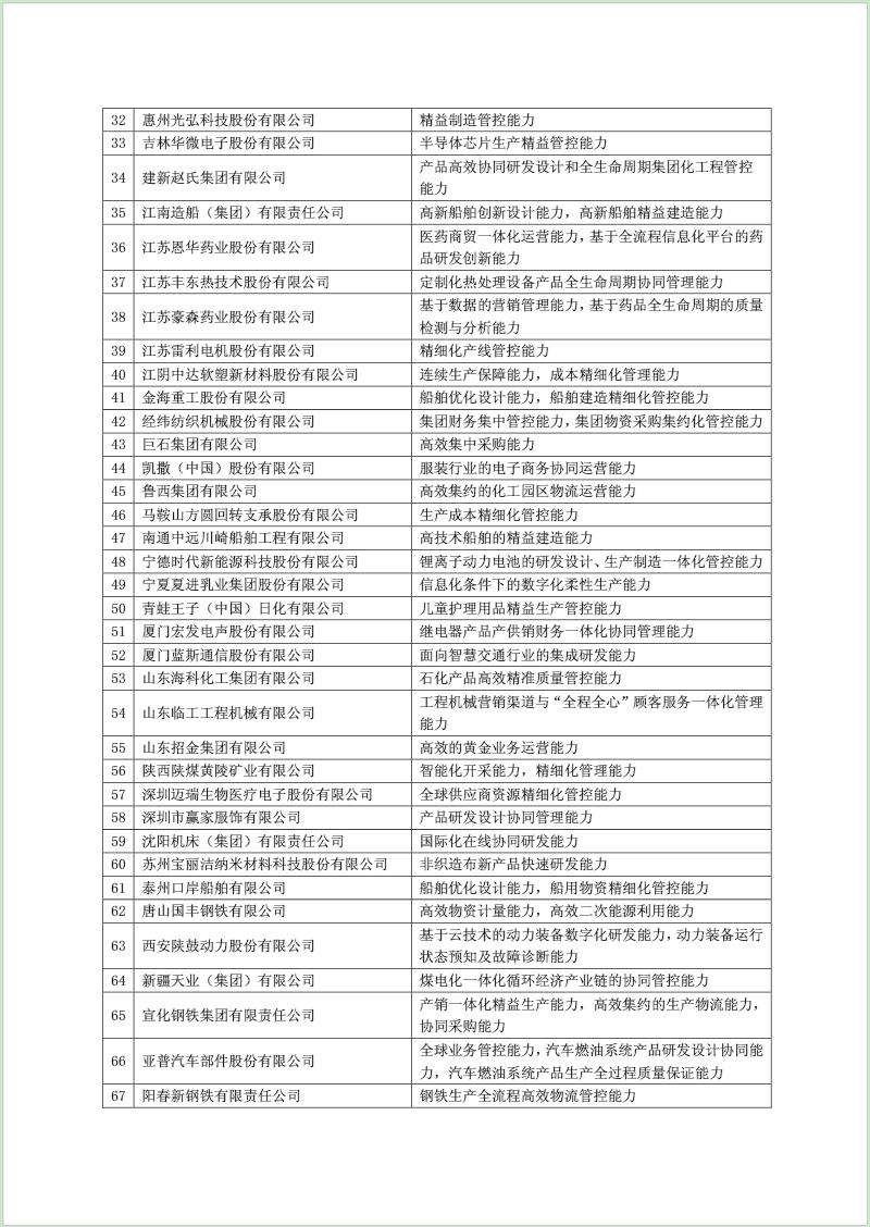 通过两化融合管理体系评定企业名单的通告
