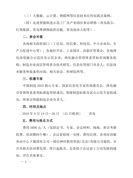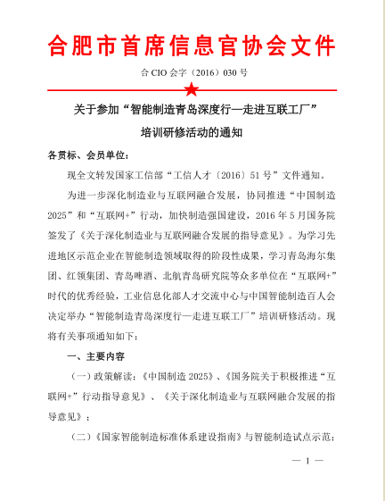 关于参加“智能制造青岛深度行—走进互联工厂”培训研修活动的通知