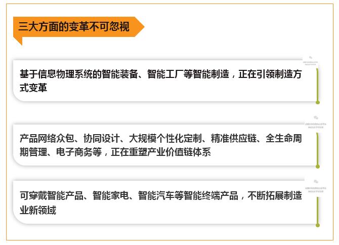 段正澄说,“不强”的具体表现为创新能力、资源利用效率、产业结构水平、信息化程度、质量效益等方面仍低水平运转。相形之下,发达国家创新驱动有力,在推动移动互联网、云计算、大数据、生物工程、新材料、新能源、增材制造(3D打印)等领域不断取得新突破。与此同时,三大方面的变革不可忽视——