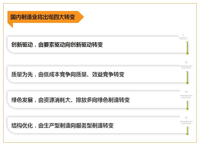 最终,通过实施“中国制造2025”,国内制造业将出现四大转变:
