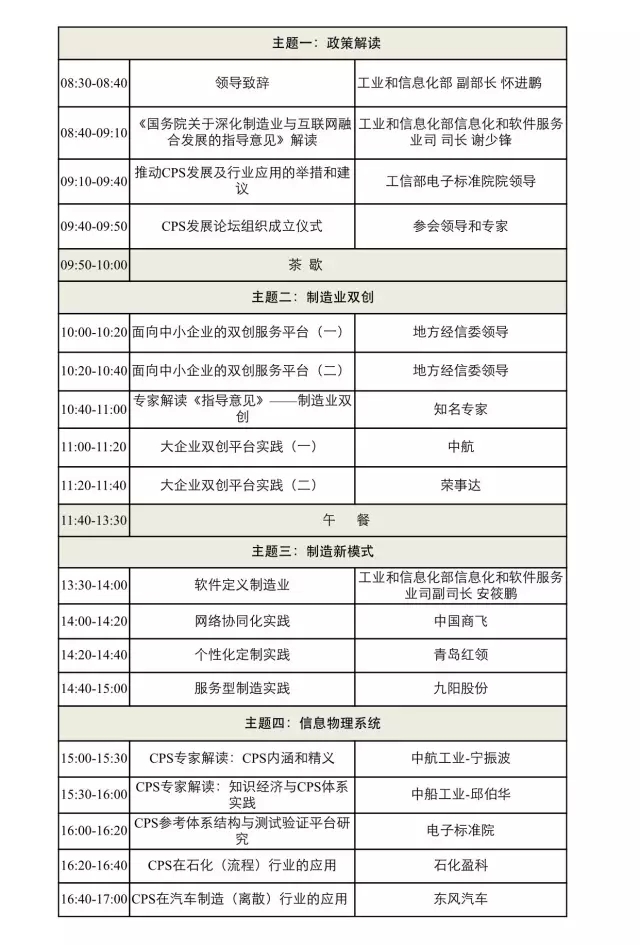 制造业与互联网融合发展经验交流会暨CPS发展论坛会议议程(拟)
