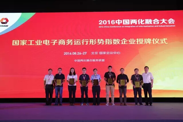 会上隆重举行了国家级首批工业电子商务运行形势指数企业授牌仪式。王建伟处长和中国两化融合服务联盟秘书长周剑为东方钢铁电子商务有限公司、山东化仙子电子商务有限公司、陕西煤炭交易中心有限公司、上海钢富电子商务有限公司、上海钢联电子商务股份有限公司、苏州工品汇信息科技有限公司、天津渤海物贸电子商务有限公司企业代表授牌。