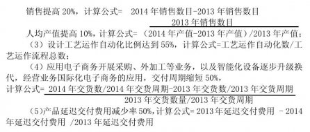 建立并识别了销售量、产值、设计工艺运作自动化、交付周期、产品延迟交付费用等6项关键绩效指标。